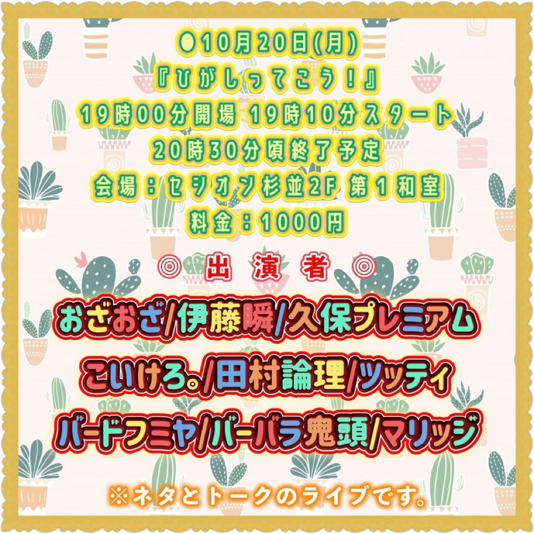 伊藤瞬/おざおざ/久保プレミアム/こいけろ。/田村論理/ツッティ(虎の巻)/バードフミヤ/バーバラ鬼頭/僕