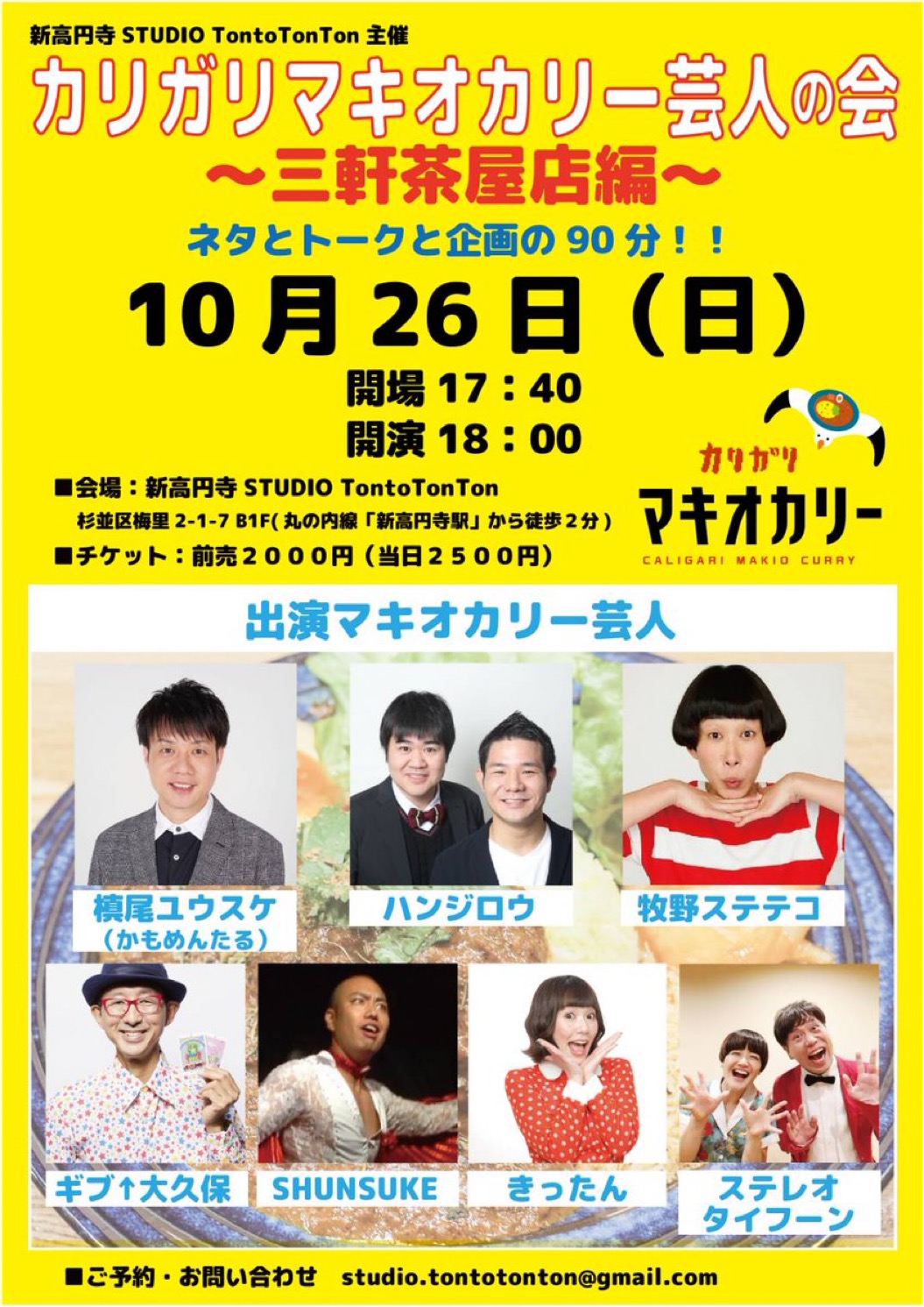 うすらトンカチがMCの雑談ライブ 2025年10月26日(日) 阿佐ヶ谷産業商工会館和室 開場18時25分 開演18時30分 終演19時30分 前売り2000円 当日2500円 【出演者】 石島さん(青御膳) 感電ライチ ギロッタ 東堂 鳥谷尾だいき Second ON マムツー 平岡純米 まみわがよく喋るライブ 2025年10月26日(日) 阿佐ヶ谷産業商工会館和室 開場19時55分 開演20時00分 終演21時00分 前売り2000円 当日2500円 【出演者】 まみわ ザクマシンガン山田 センス爆発女 大吟嬢 たなかかなた 田村論理 ちびシャトル とんとん拍子 はつぞのゾノ ひょろし 村橋ステム 森林子