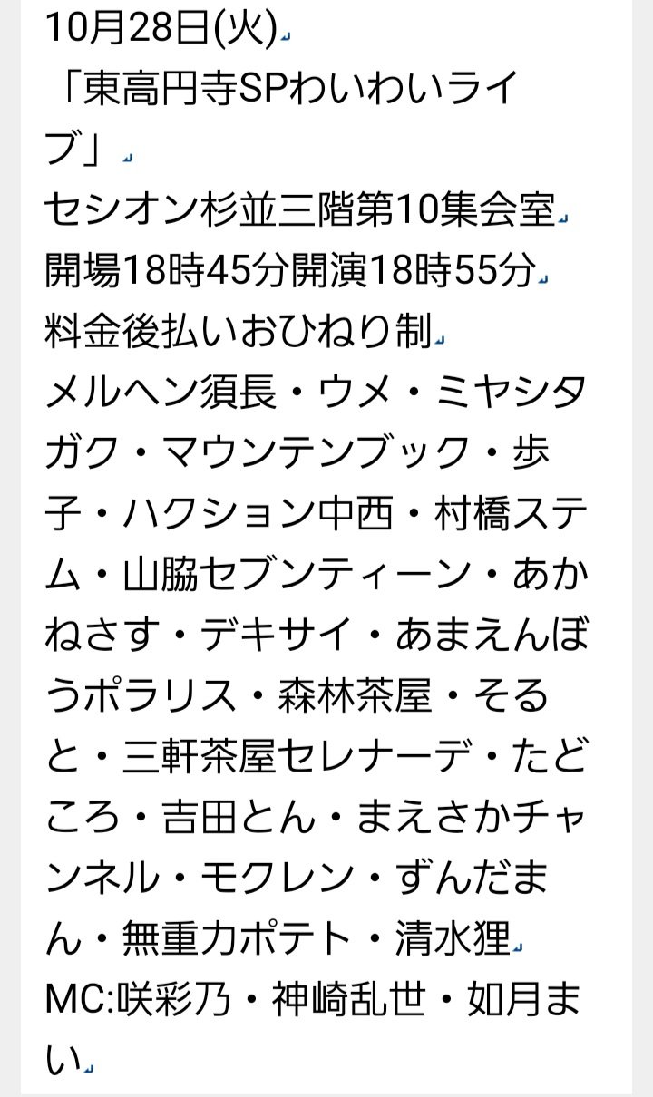 ■ 東高円寺SPわいわいライブ [ NO. 2025102805-1 ]