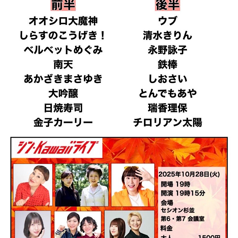 🕰️10/28(火)19:10開場 19:30開演 21:00終演