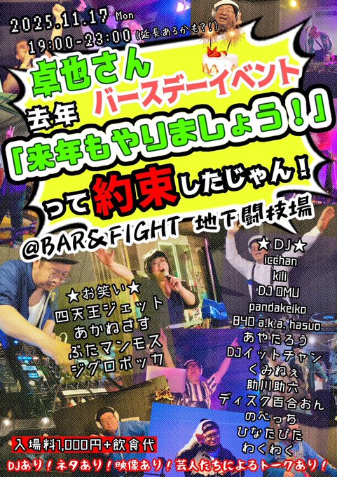 ■ 四天王の卓也努力勝利氏のお誕生日会 [ NO. 2025111702-1 ]