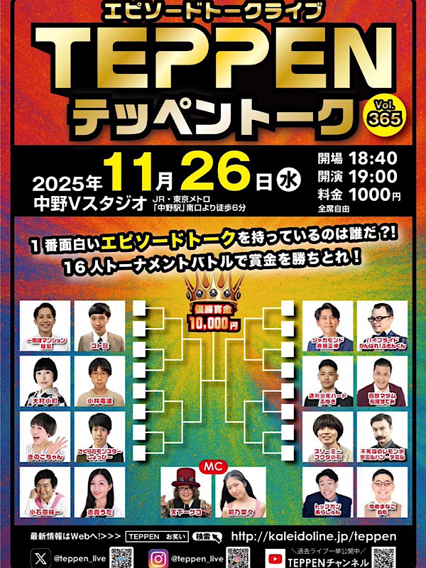 日 2025年11月26日(水) 時間 開場18:40 開演19:00 会場 中野Vスタジオ. 料金 1,000円(全席自由)