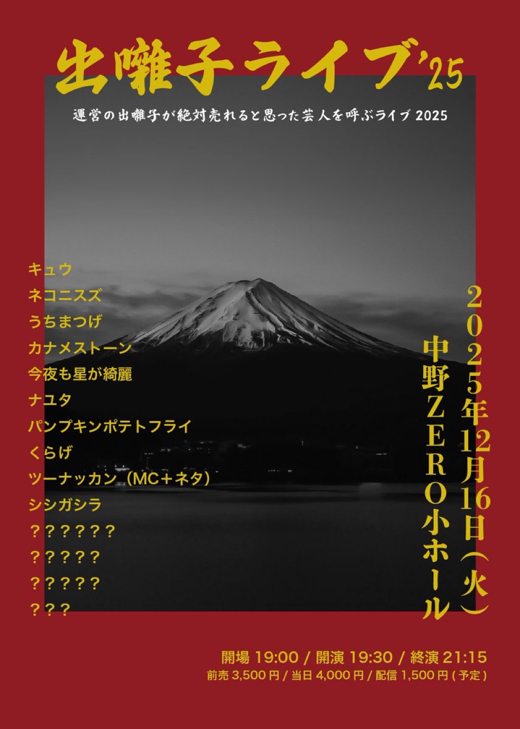 📅12/16(火)19:30〜@中野ZERO小ホール