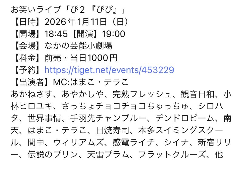 ■ お笑いライブ「ぴ2 『ぴぴ』」 [ NO. 2026011103-1 ]