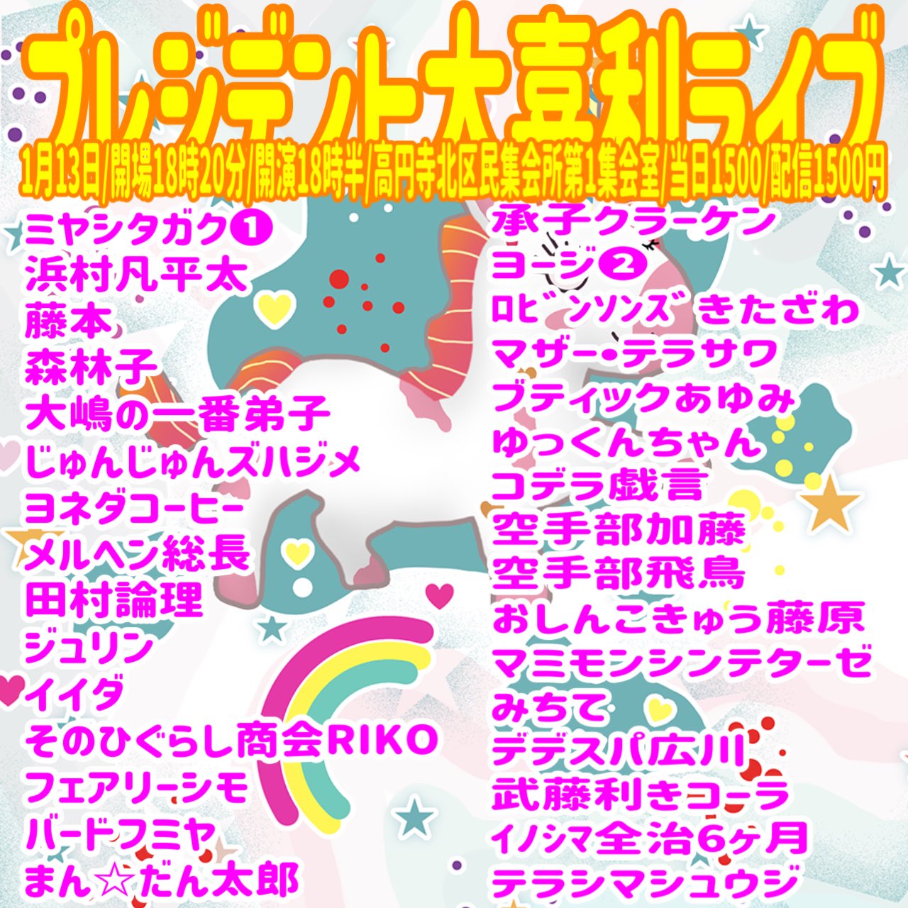 ミヤシタガク❶/浜村凡平太/藤本/森林子/じゅんじゅんズハジメ/ヨネダコーヒー/田村論理/ジュリン/イイダ/そのひぐらし商会RIKO/バードフミヤ/メルヘン総長/他