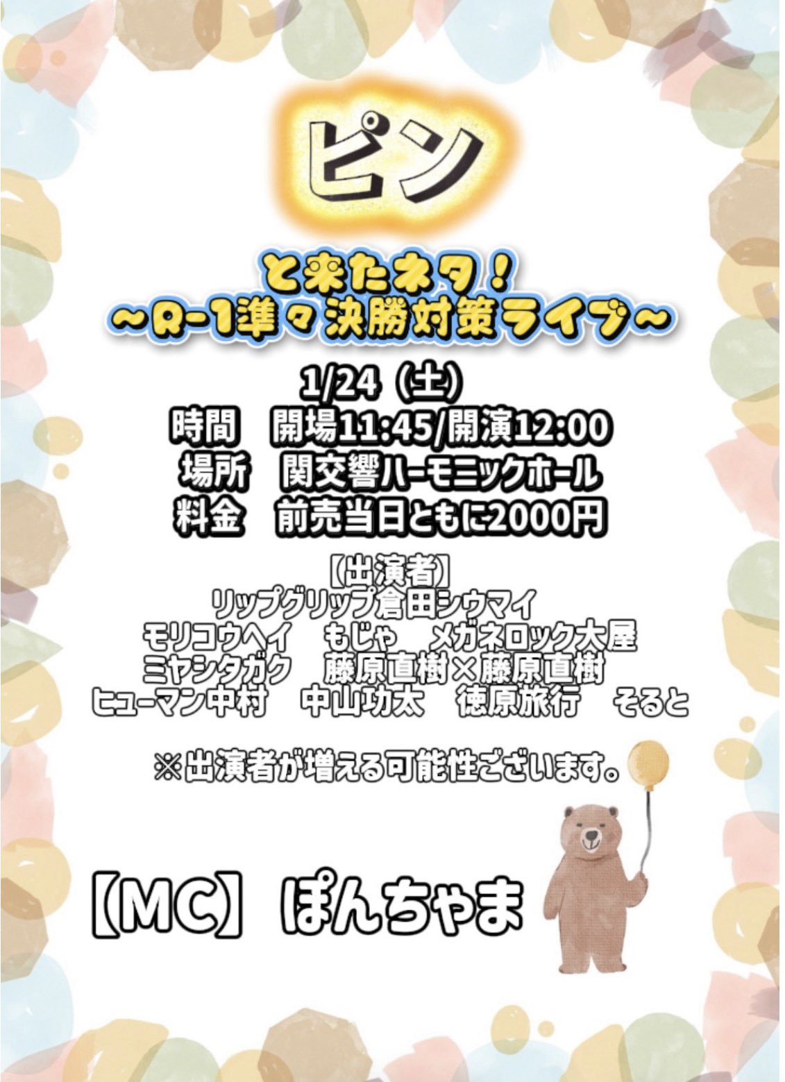 ■ ピンと来たネタ! 〜R-1準々決勝対策ライブ〜 [ NO. 2026012404-1 ]