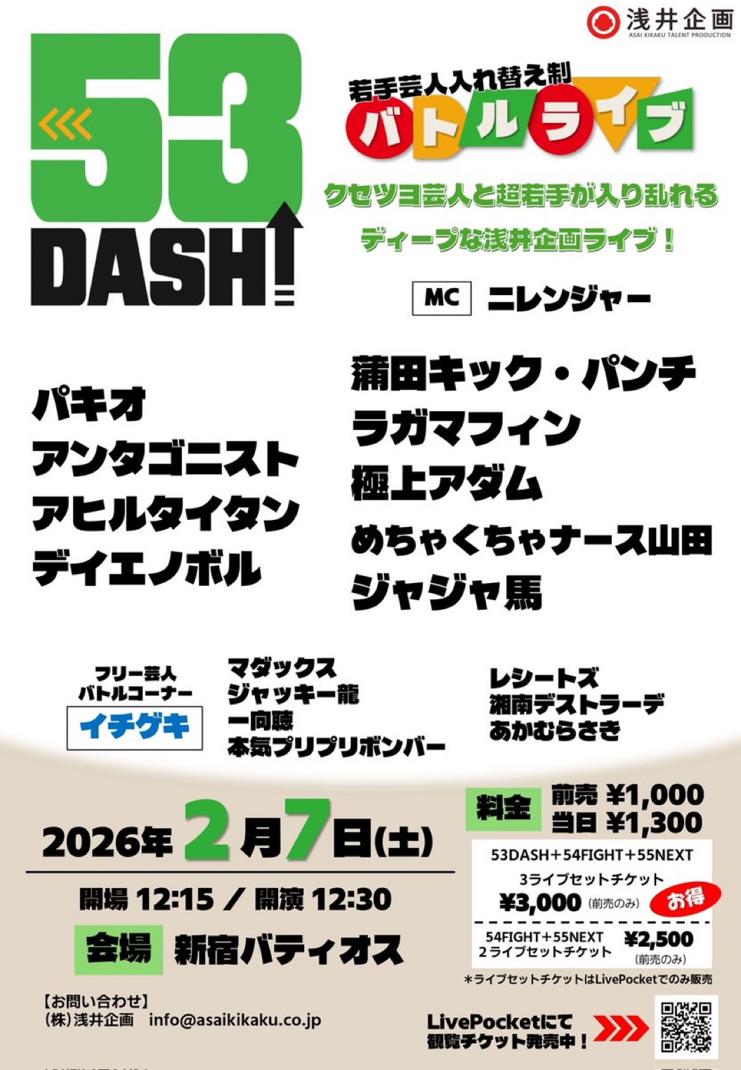■ 浅井企画お笑いライブ53DASH [ NO. 2026020708-1 ]