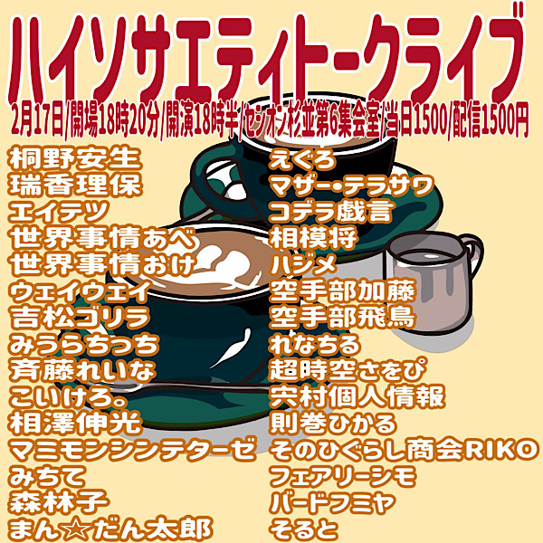 ■ ハイソサエティトークライブ [ NO. 2026021703-1 ]