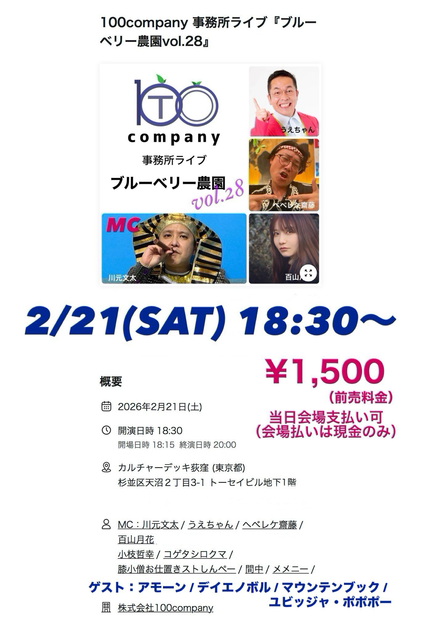 ■ 100company 事務所ライブ『ブルーベリー農園28』 [ NO. 2026022108-1 ]