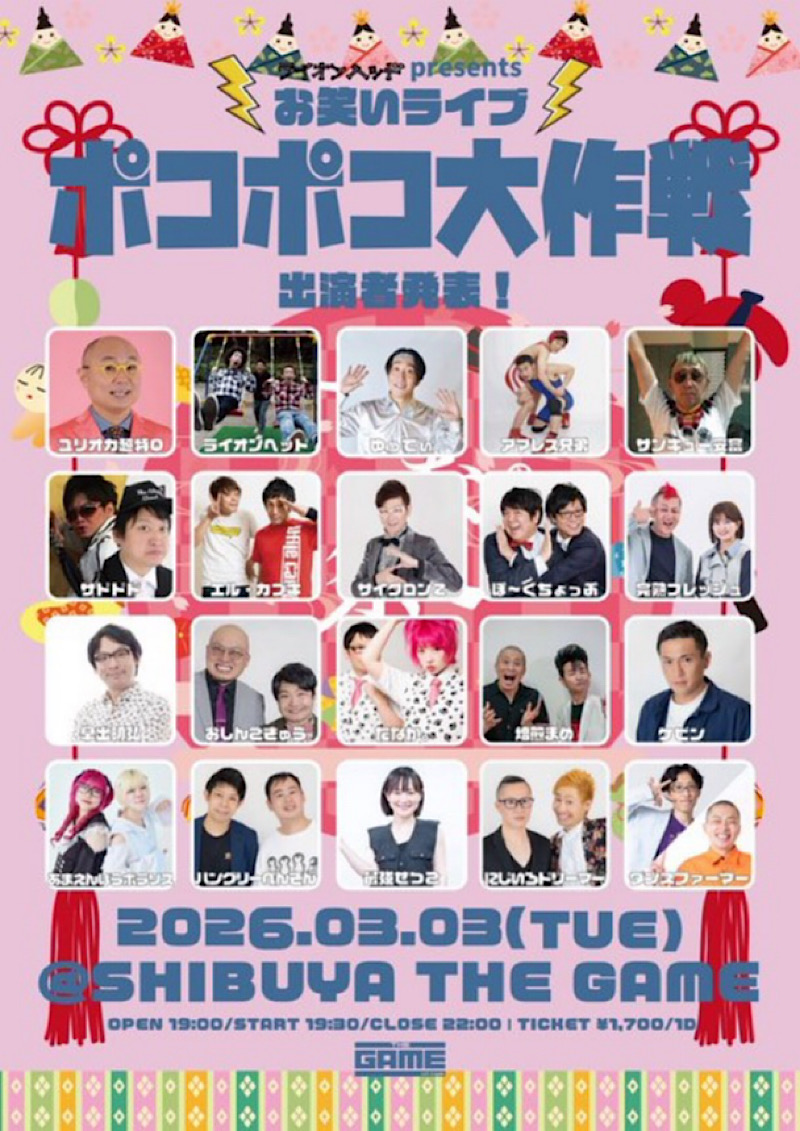 ■ 【俺ゴミさん入院たなか。に変更】ライオンヘッド主催お笑いライブ 「ポコポコ大作戦」 [ NO. 2026030302-1 ]