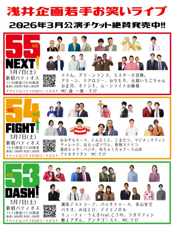 ■ 浅井企画若手お笑いライブ [ NO. 2026030706-1 ]