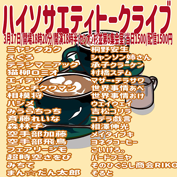 ■ ハイソサエティトークライブ [ NO. 2026031705-1 ]